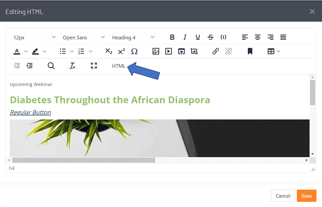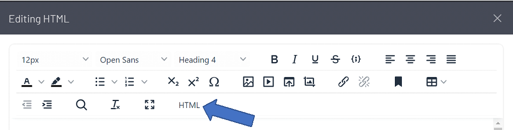 - Edit the Content Item and Select the HTML Button